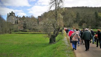 Départ de Couzeix en covoiturage vers le charmant village de Collonges la Rouge. Nous descendons la rue de la Barrière, pour une randonnée de sept kilomètres nommée : Au long des lavoirs, direction le hameau de Hautefort puis nous prenons la direction du lavoir de Bassignac. A travers les prairies, on peut voir des ponts en grès rouges et des petits lavoirs.