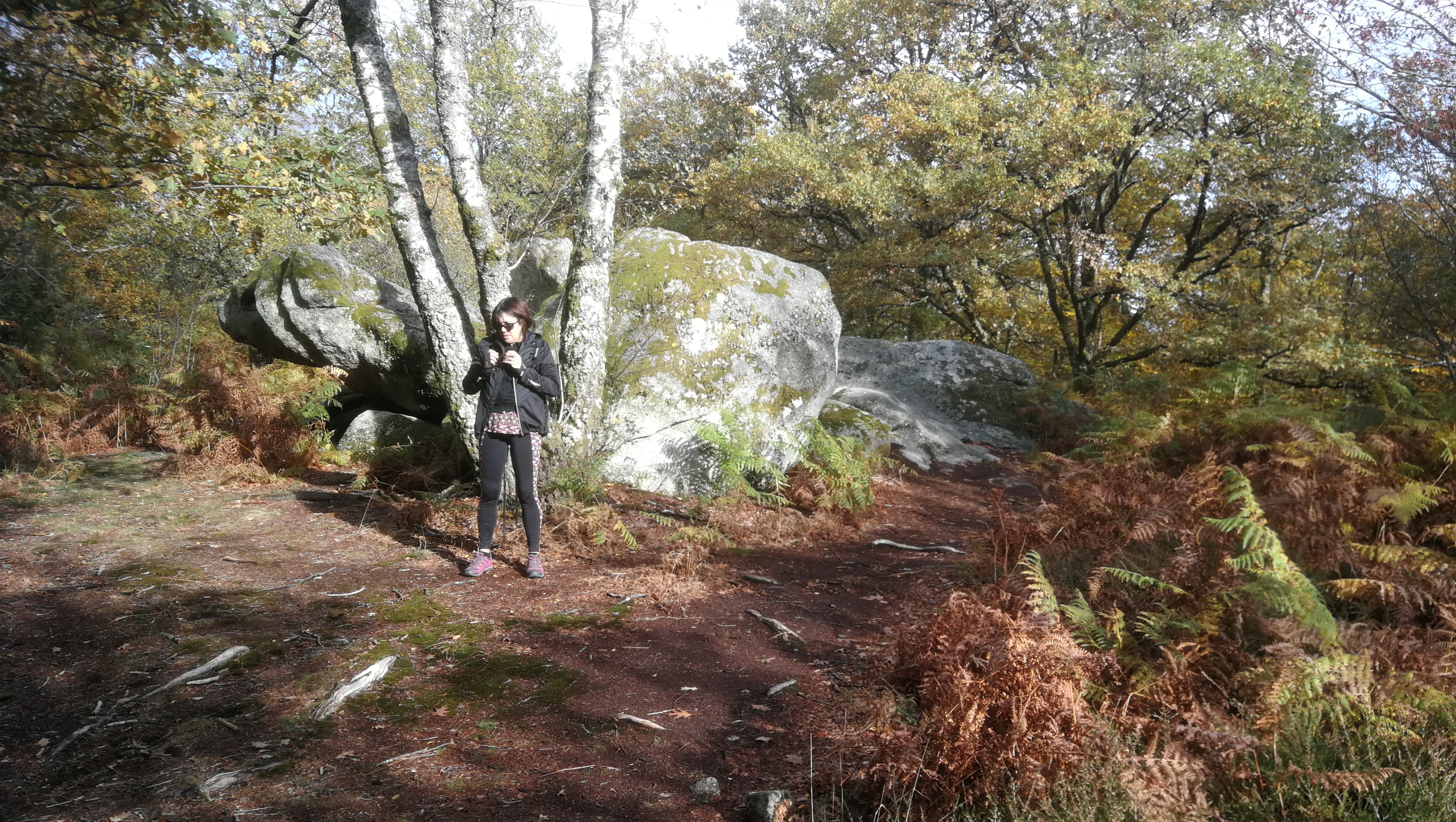 Nous voici sur le "sentiers des pierres à légendes"...C'est peu dire ! La forêt est parsemée d'énormes rochers de formes très imaginatives, mêlés aux arbres aux couleurs d'automne !